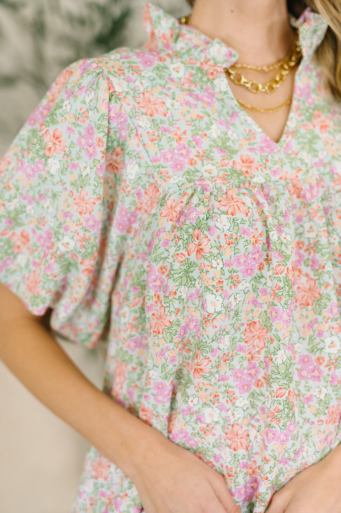 The Flower Picking Notch Neck Blouse brings effortless charm with its crisp poplin weave and romantic details. A ruffled neckline frames your face beautifully, while voluminous balloon sleeves lined for comfort create movement and flair. The gathered bust seam flatters your silhouette, and adjustable elastic cuffs keep sleeves exactly where you want them. A back center seam adds structure and polish. Perfect for garden strolls, brunch dates, or whenever you want to feel whimsical and put-together.