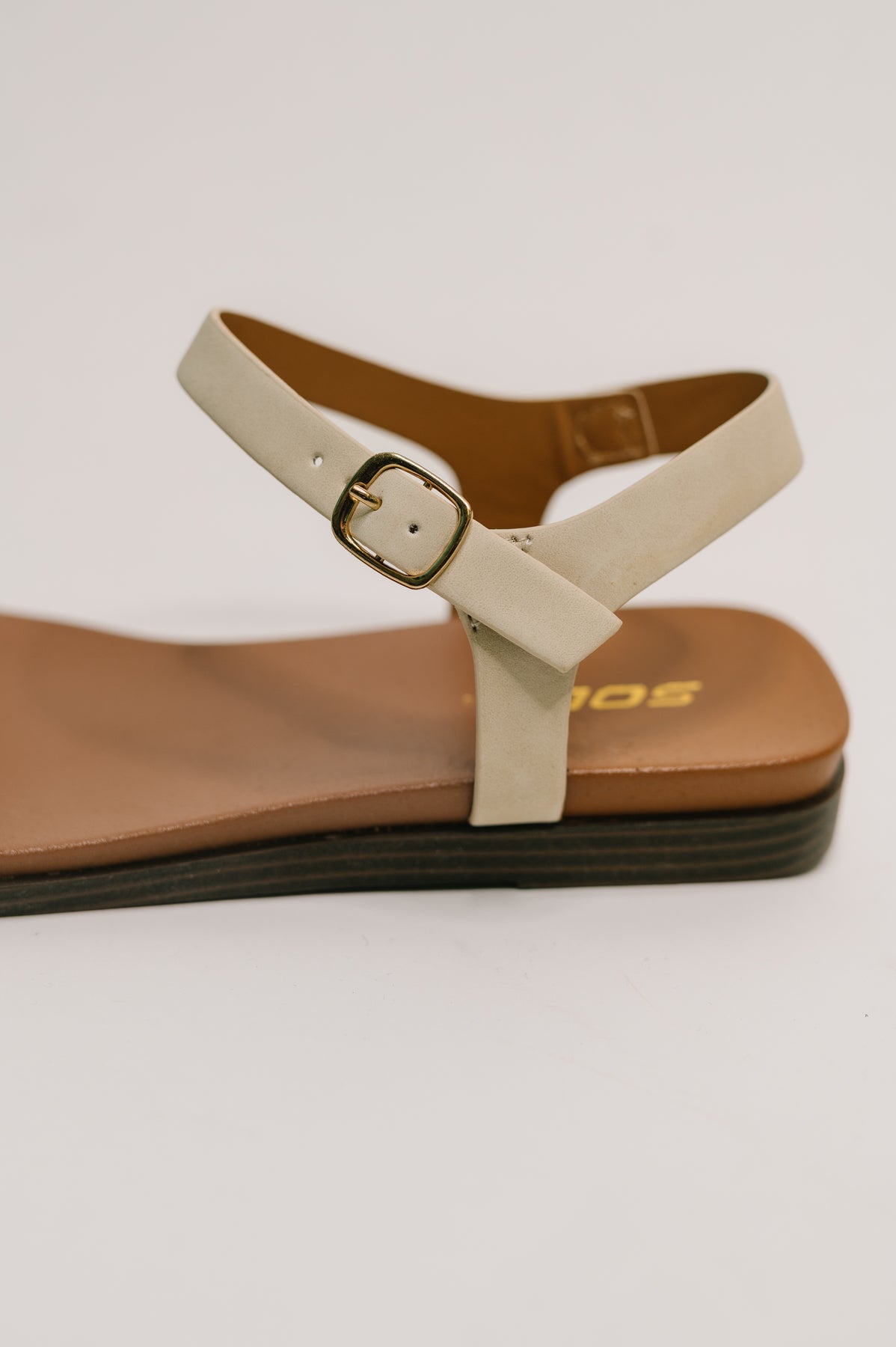 The Riddle Ankle Strap Sandal in Beige is the answer to your summer footwear riddle. Crafted from luxurious PU nubuck leather, this sandal wraps your foot in soft sophistication while the adjustable ankle strap ensures a custom fit that actually stays put. The square toe silhouette brings modern edge to classic comfort, while gleaming gold hardware adds just the right touch of shine. Topped off with a durable rubber sole built for real-world wandering, this is one riddle worth solving again and again.